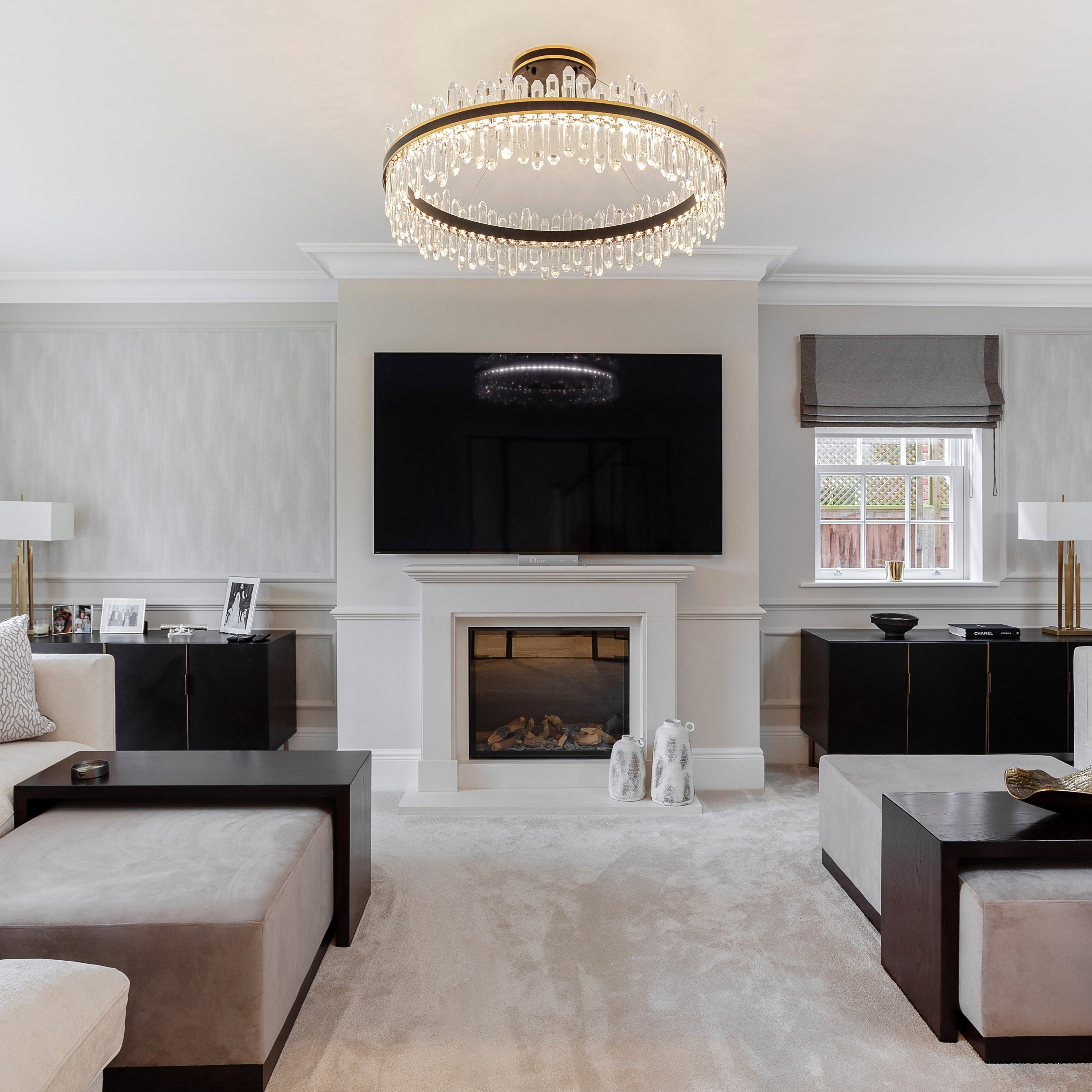 A masterclass in understated luxury, with its neutral tones, textured finishes, and soft furnishings creating a warm, inviting atmosphere. To enhance the space, our lighting brings depth and refinement, complementing the subdued palette and bold accents.