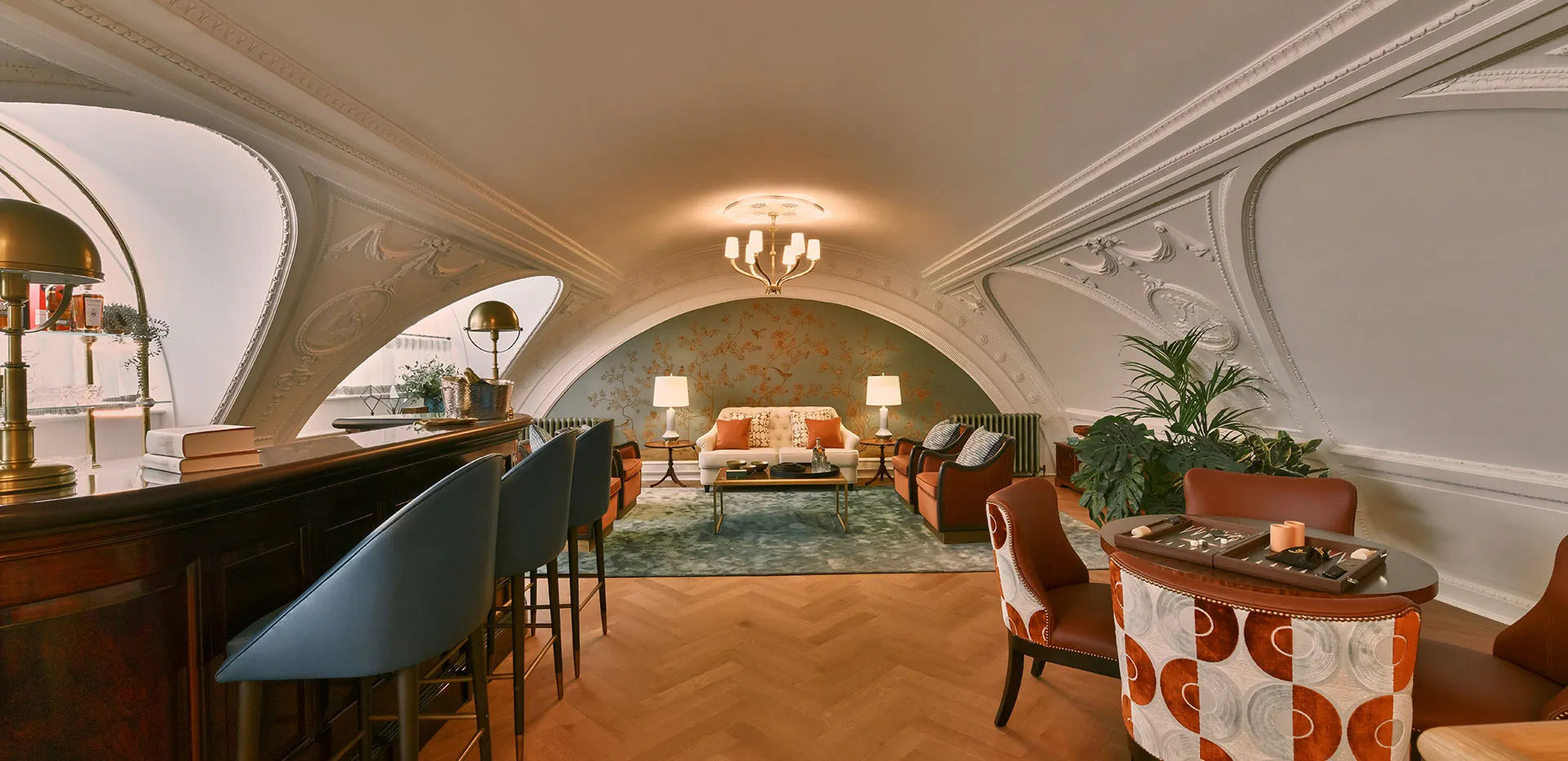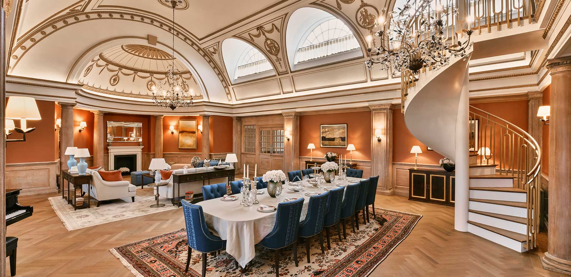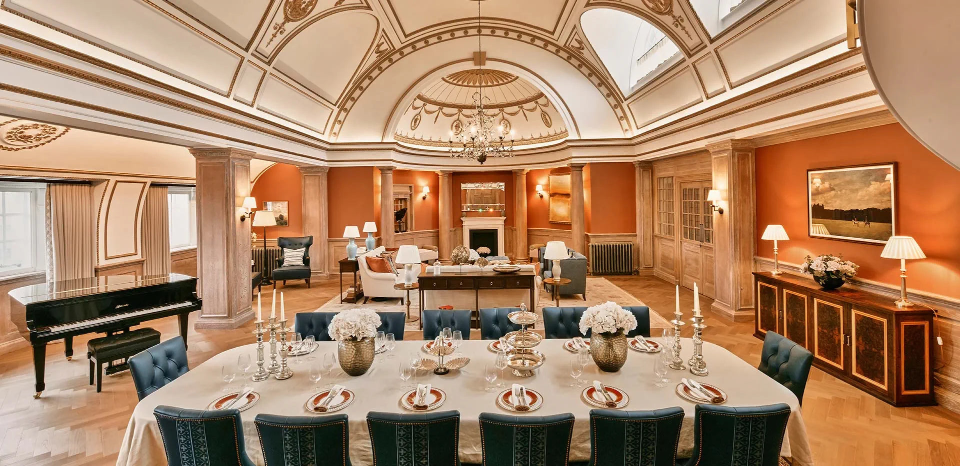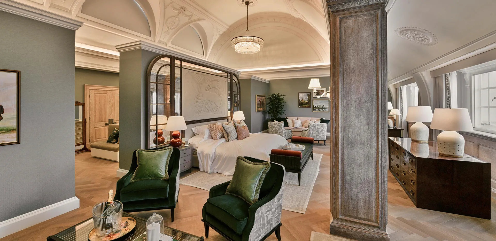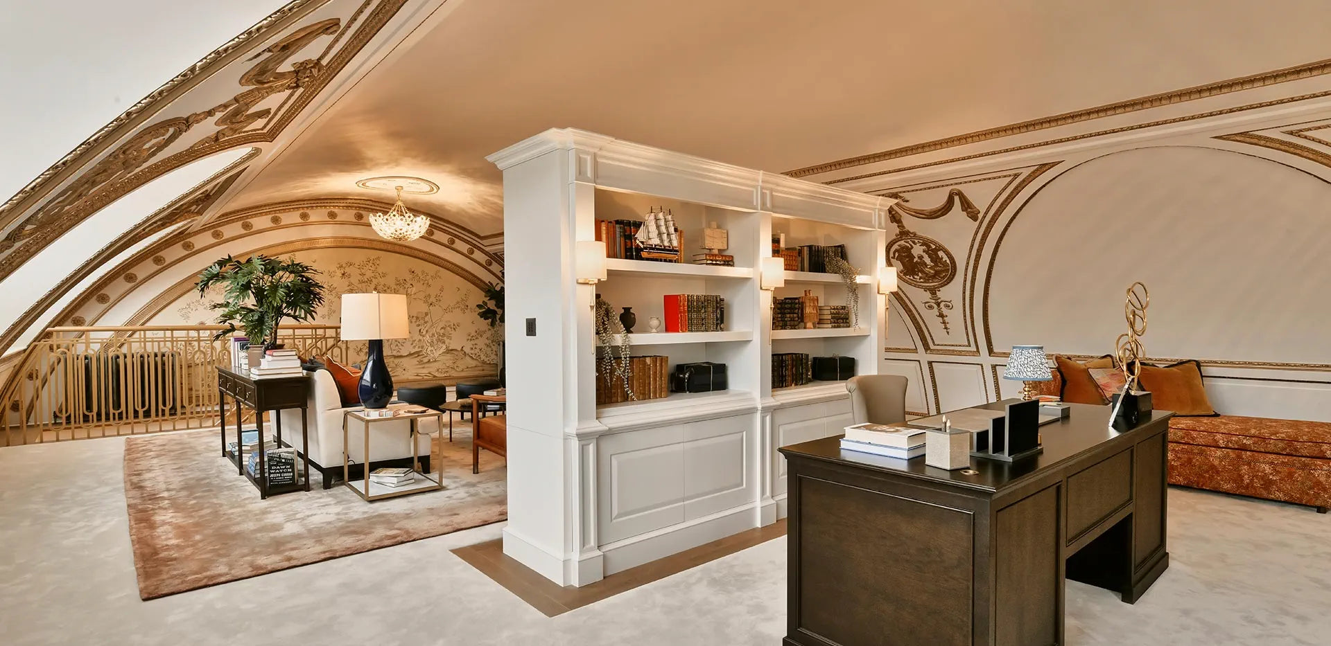 The Astor spans 9,582 sq. ft. Named after Viscountess Nancy Astor, the first female MP, this duplex penthouse radiates Roaring Twenties glamour and British elegance, featuring stunning views of The Palace of Westminster and luxurious amenities such as three bedrooms, a grand reception room, and a cinema.