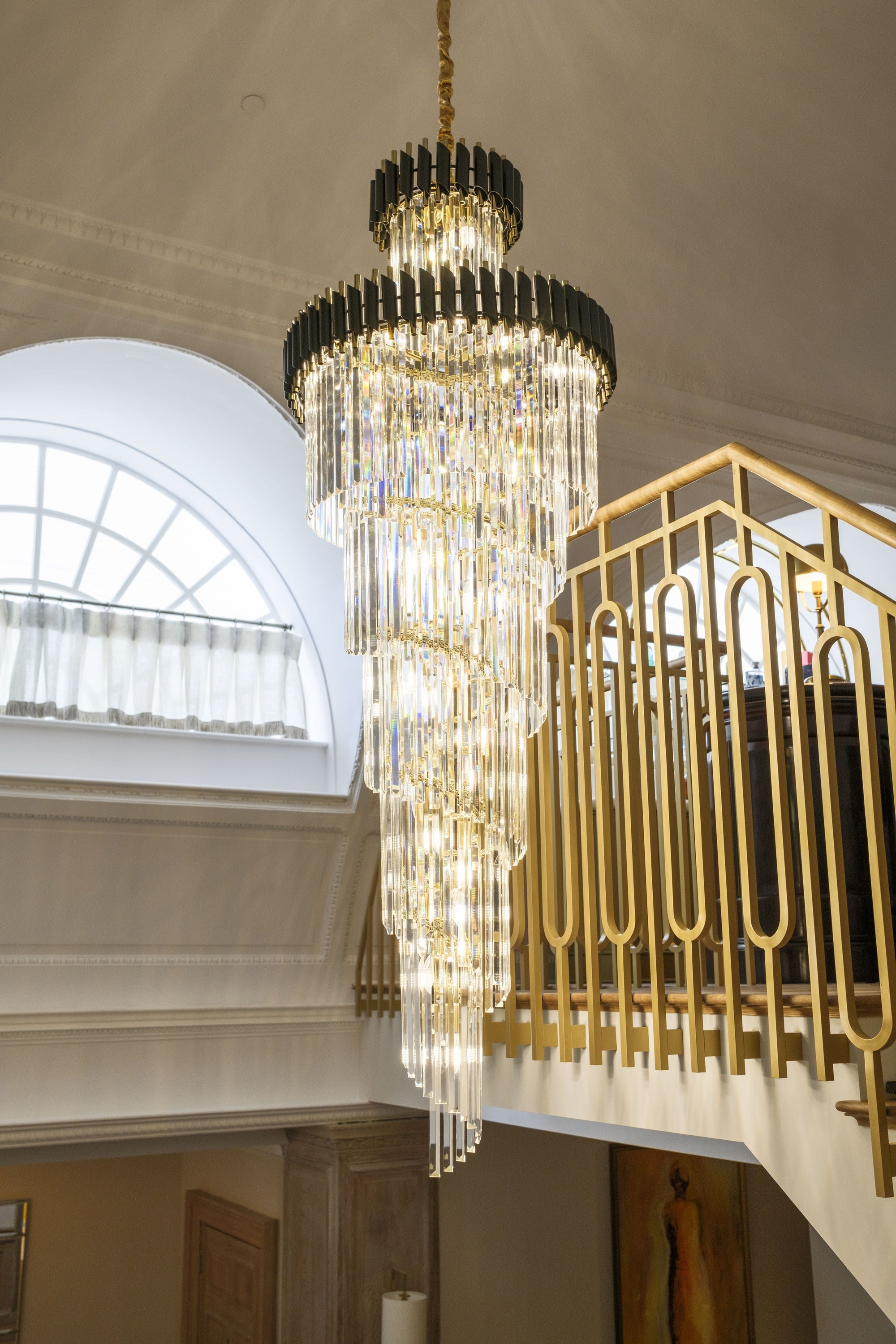 A standout feature within The Astor is the Milltimber Spiral Staircase Chandelier by Vorelli. This bespoke lighting piece perfectly complements the historic and modern design elements of the penthouse, adding a touch of elegance and sophistication to the space.